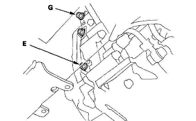 19. Connect the oil pressure gauge to the 3rd clutch pressure inspection port (E) and the 5th clutch pressure inspection port (G).