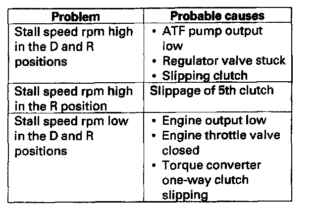 Stall Speed Test1. Make sure the transmission fluid is filled to the upper level.