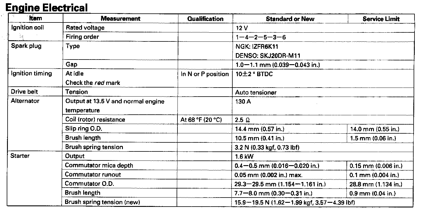 Starting and Charging: Specifications