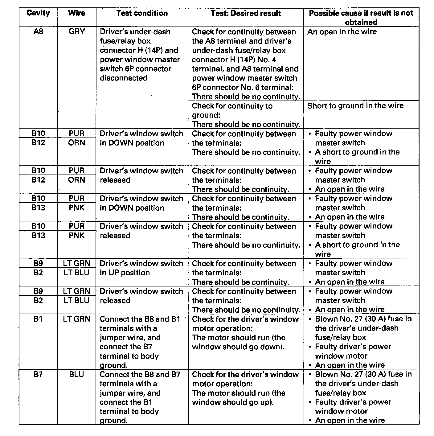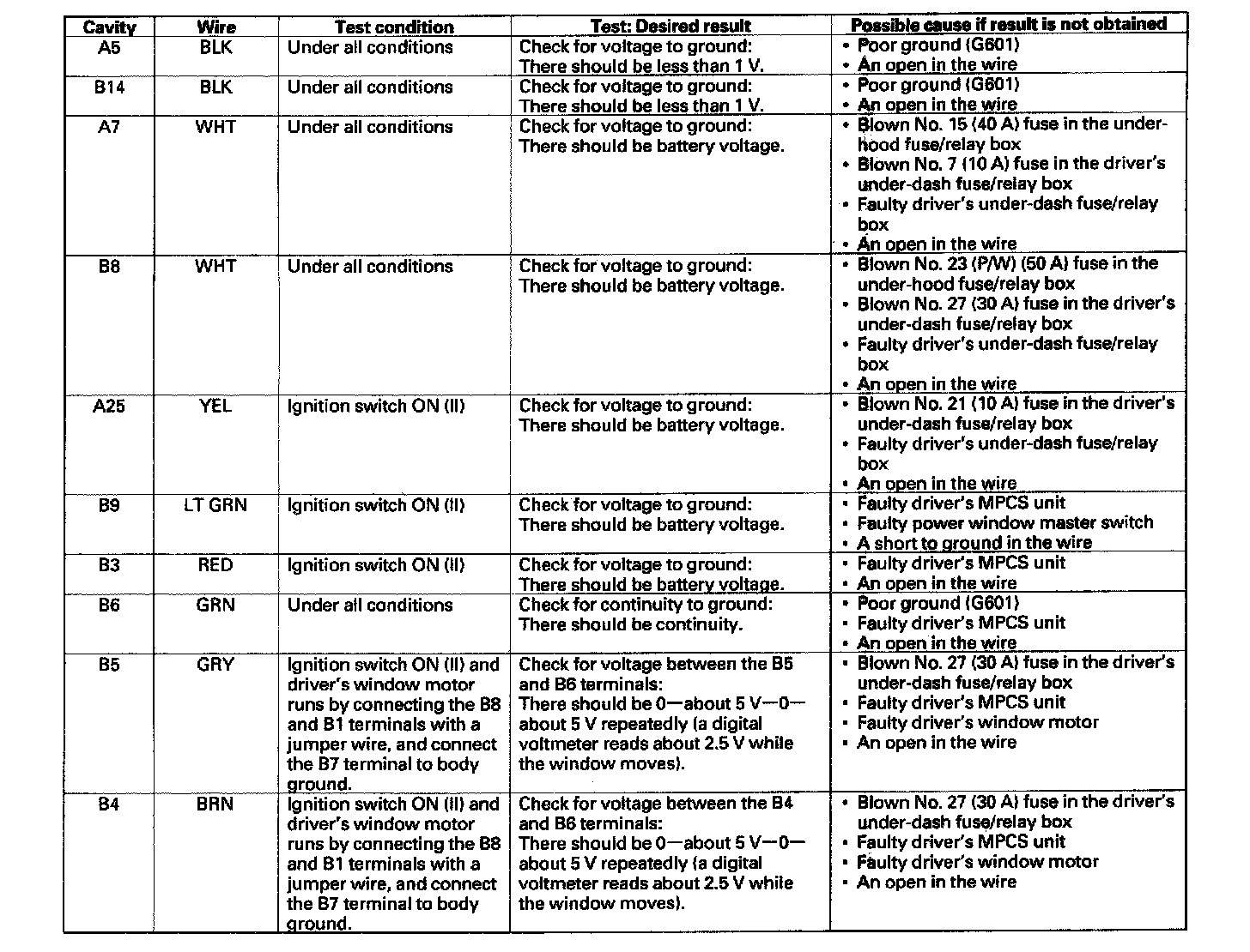 Home >> Acura >> 2005 >> RL V6-3.5L >> Repair and Diagnosis >> Windows and Glass >> Relays and Modules - Windows and Glass >> Power Window Control Module >> Testing and Inspection >> Component Tests and General Diagnostics >> Driver's MPCS Unit Input Test