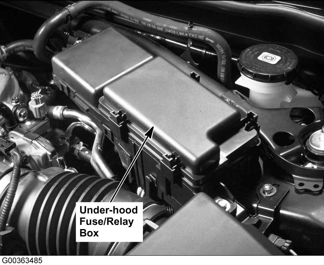 | Under-Hood Fuse/Relay Box | Left rear of engine compartment. See Figure . |