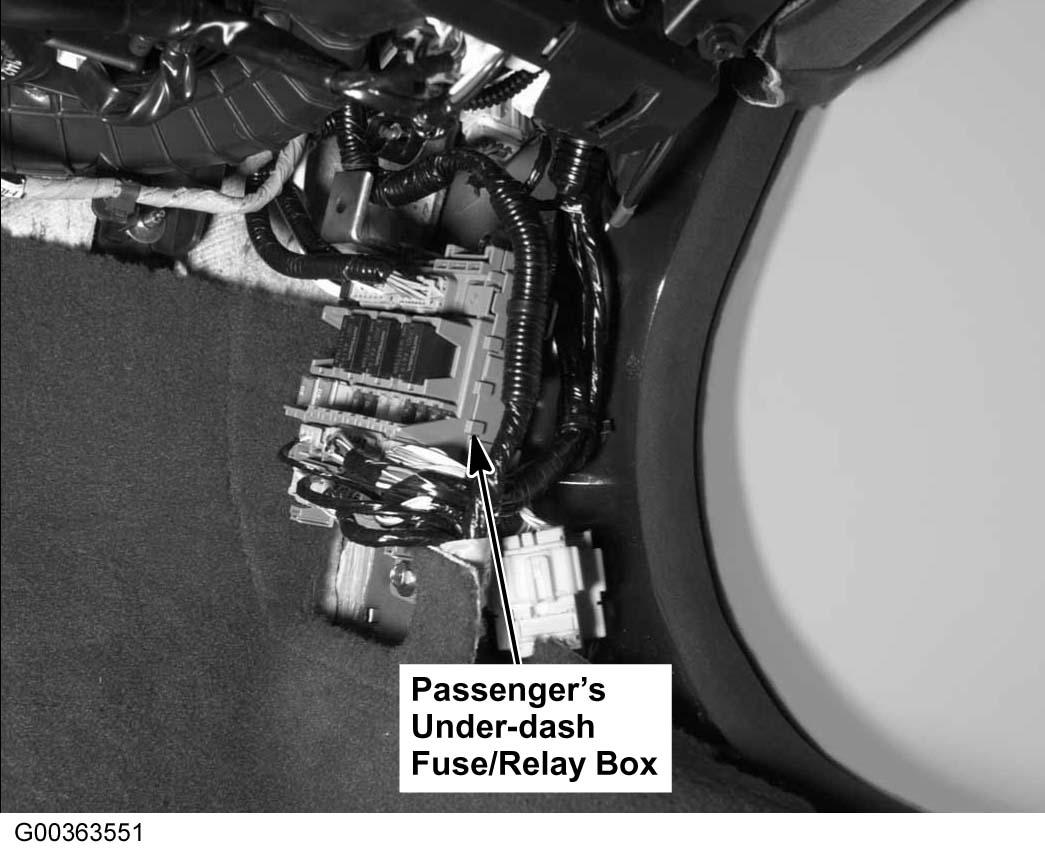 | Passenger's Under-Dash Fuse/Relay Box | Behind right kick panel. See Figure . |