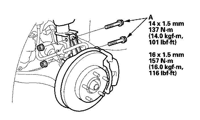 7. Replace the damper pinch bolts with the adjusting bolts (A), and adjust the camber angle.