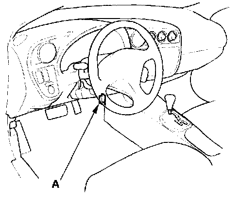 2. Connect the HDS or the Honda Interface Module (HIM) to the data link connector (DLC) (A) located under the driver's side of the dashboard.