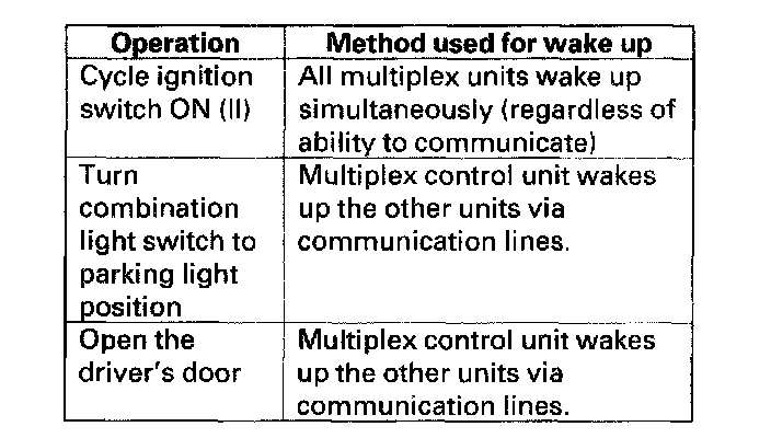Multiplex Wake-up Mode Test1. From the Sleep Mode, wake-up the multiplex system by performing one of the above operations.