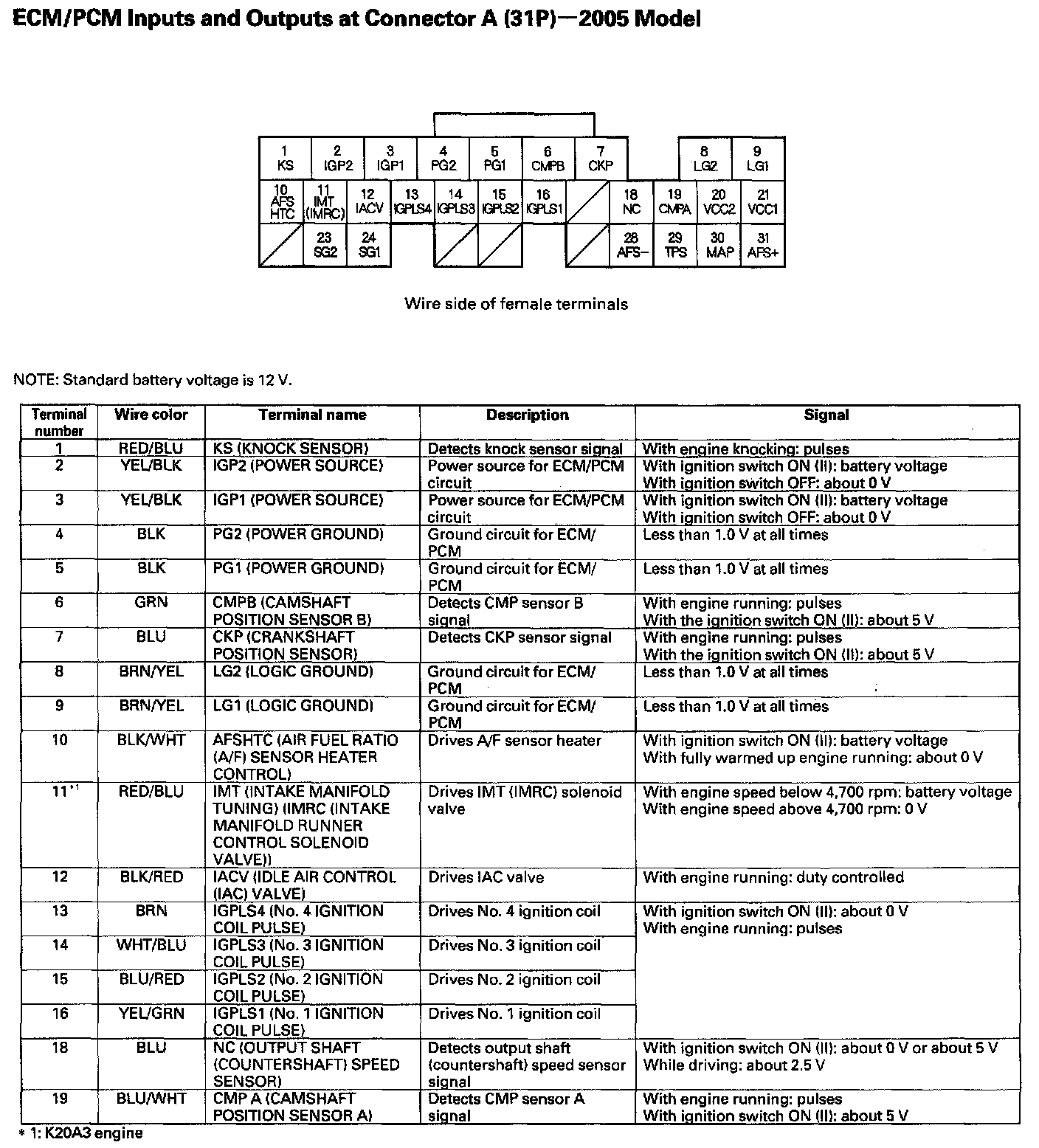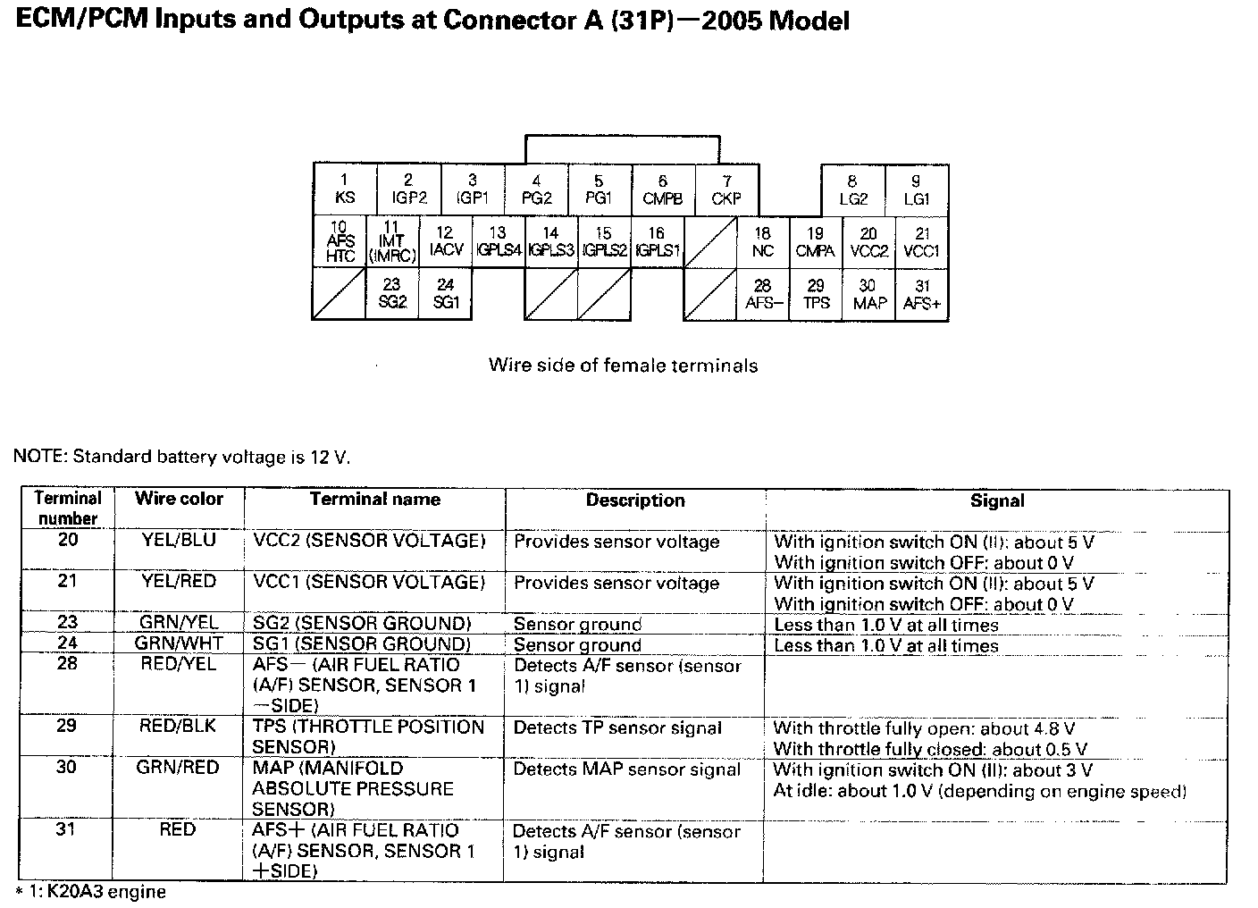 ECM/PCM Inputs And Outputs At Connector A (31P):