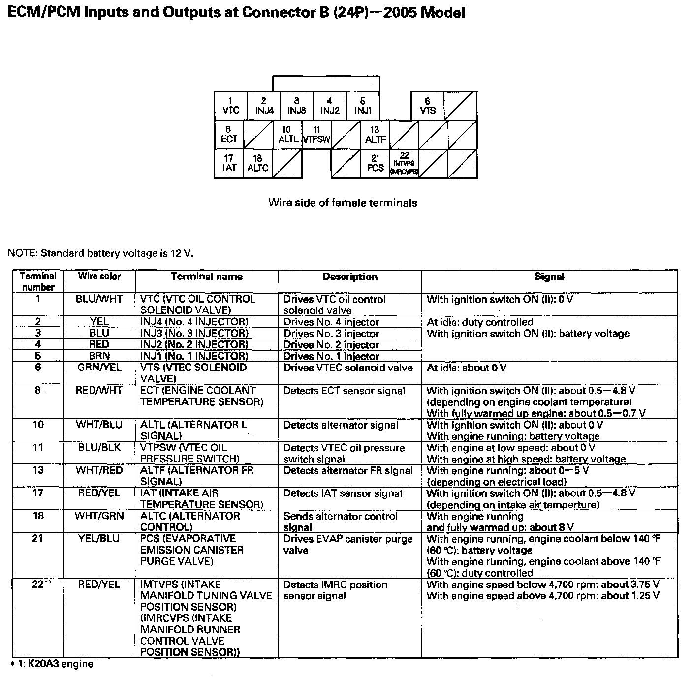 Home >> Acura >> 2005 >> RSX L4-2.0L >> Repair and Diagnosis >> Powertrain Management >> Computers and Control Systems >> Relays and Modules - Computers and Control Systems >> Engine Control Module >> Testing and Inspection >> Pinout Values and Diagnostic Parameters