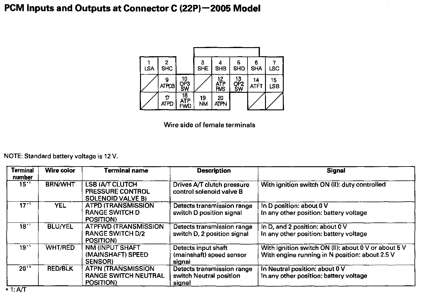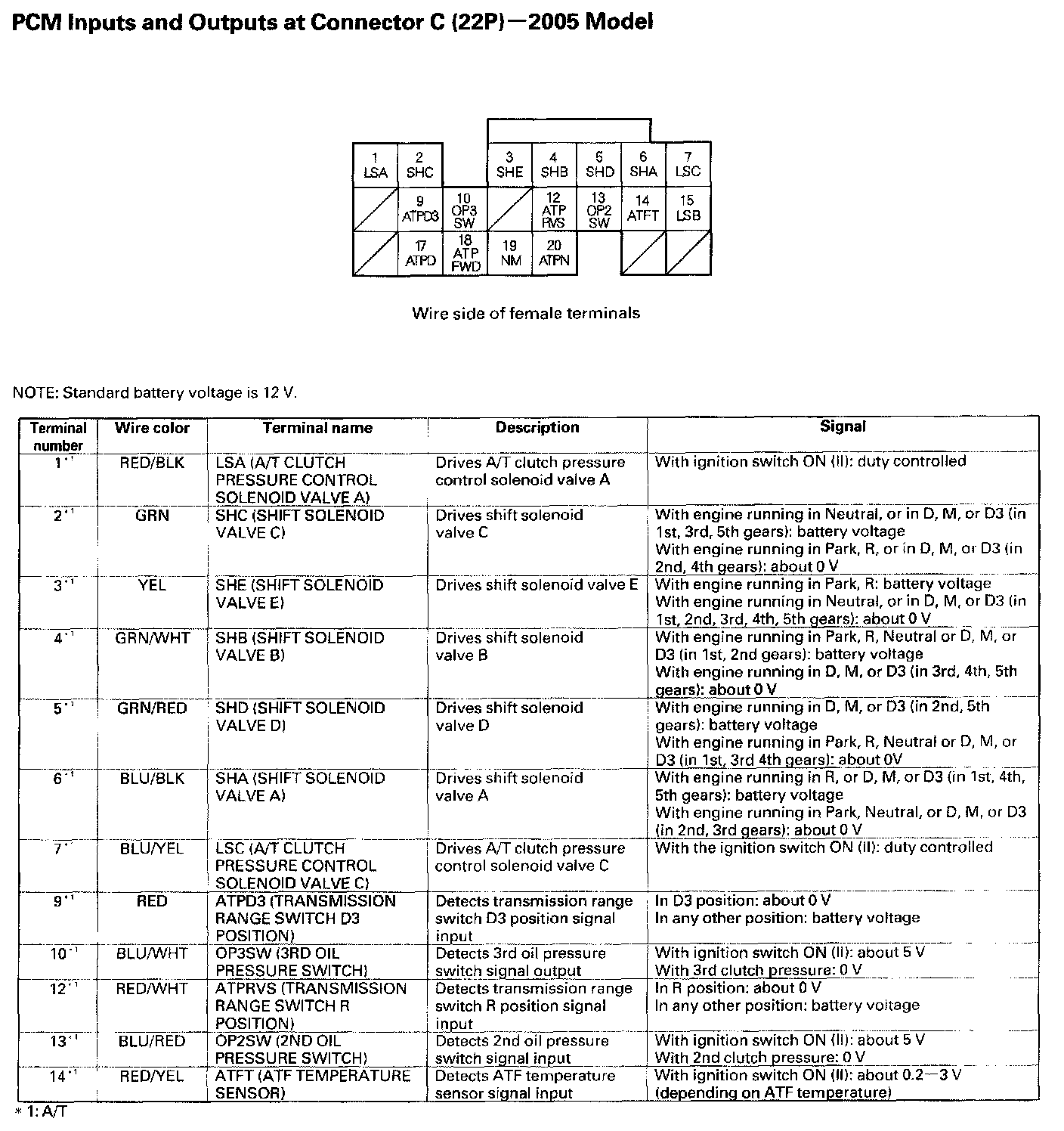 PCM Inputs And Outputs At Connector C (22P):
