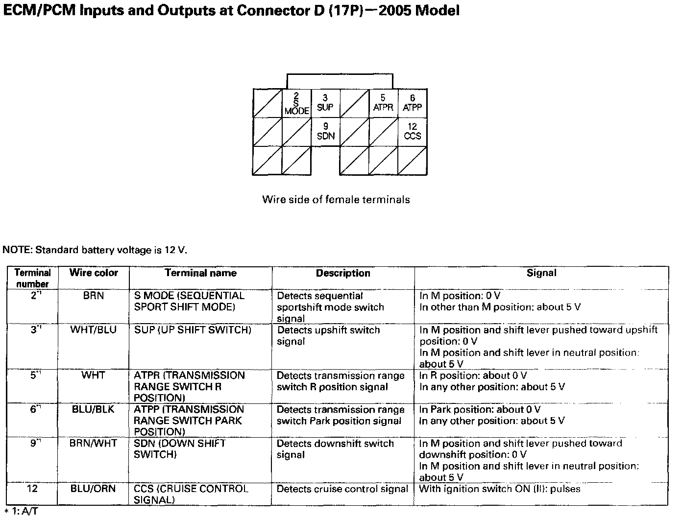 ECM/PCM Inputs And Outputs At Connector D (17P):
