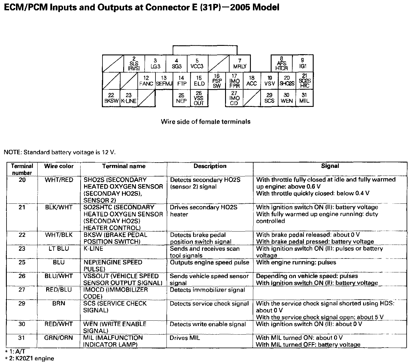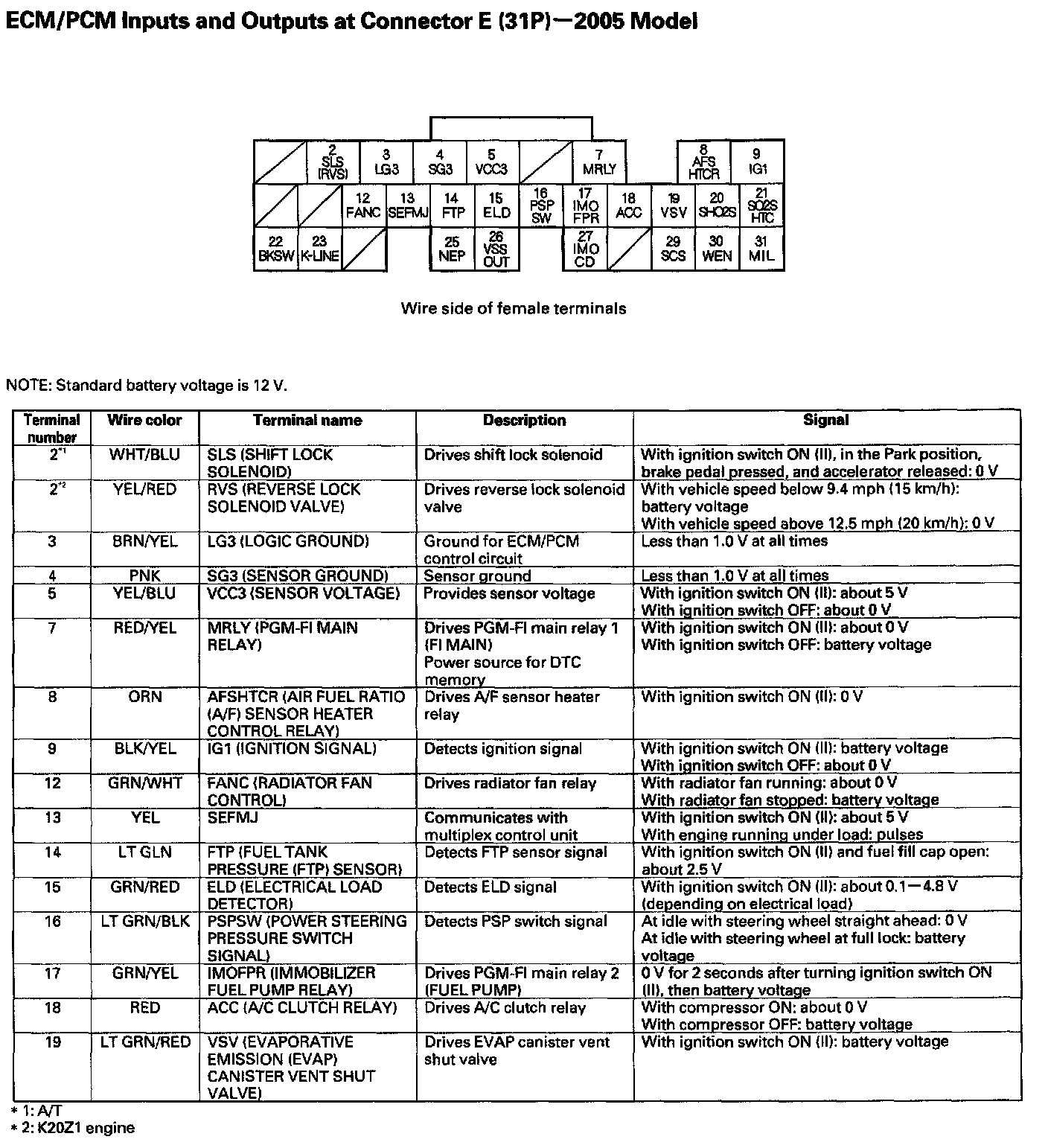 ECM/PCM Inputs And Outputs At Connector E (31P):