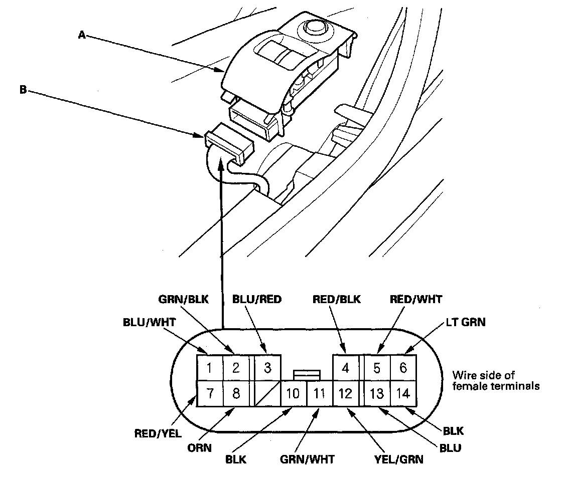 2. Disconnect the 14P connector (B) from the master switch (A).