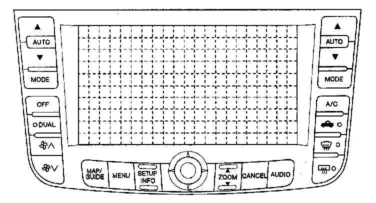 The display unit uses a liquid crystal display (LCD). The LCD is a 8-inch-diagonal, thin film transistor (TFT), stripe type with 336,960 picture elements. The color film and fluorescent light are laid out on the back of the liquid crystal film. The touch sensor on the front of the LCD consists of a touch sensitive resistive membrane with an infinite number of possible touch locations. To maintain compatibility with earlier display units the sensing locations are confined to a grid of 20 vertical and 9 horizontal touch locations. This produces 180 total sensing zones. The display unit transmits the signal from each operation key and the touch switches to the navigation unit over the GA-Net bus.