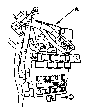 4. Disconnect the connectors from the fuse side of the under-dash fuse/relay box (A).