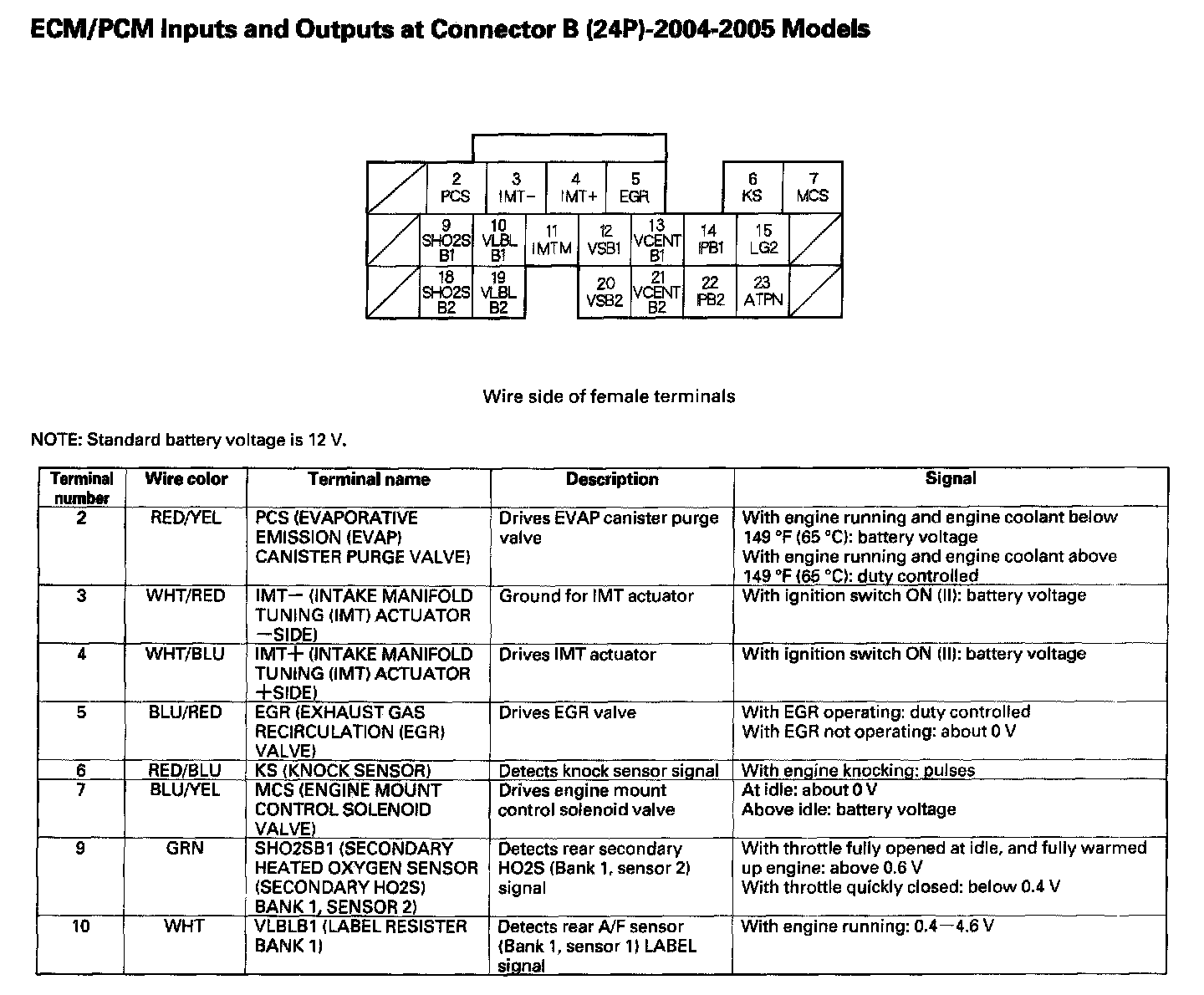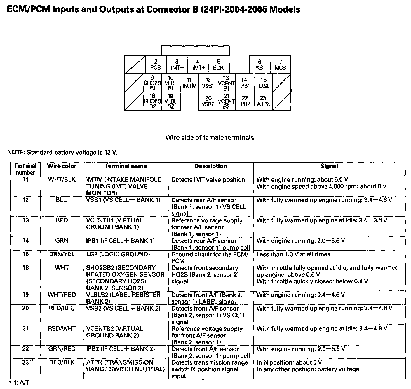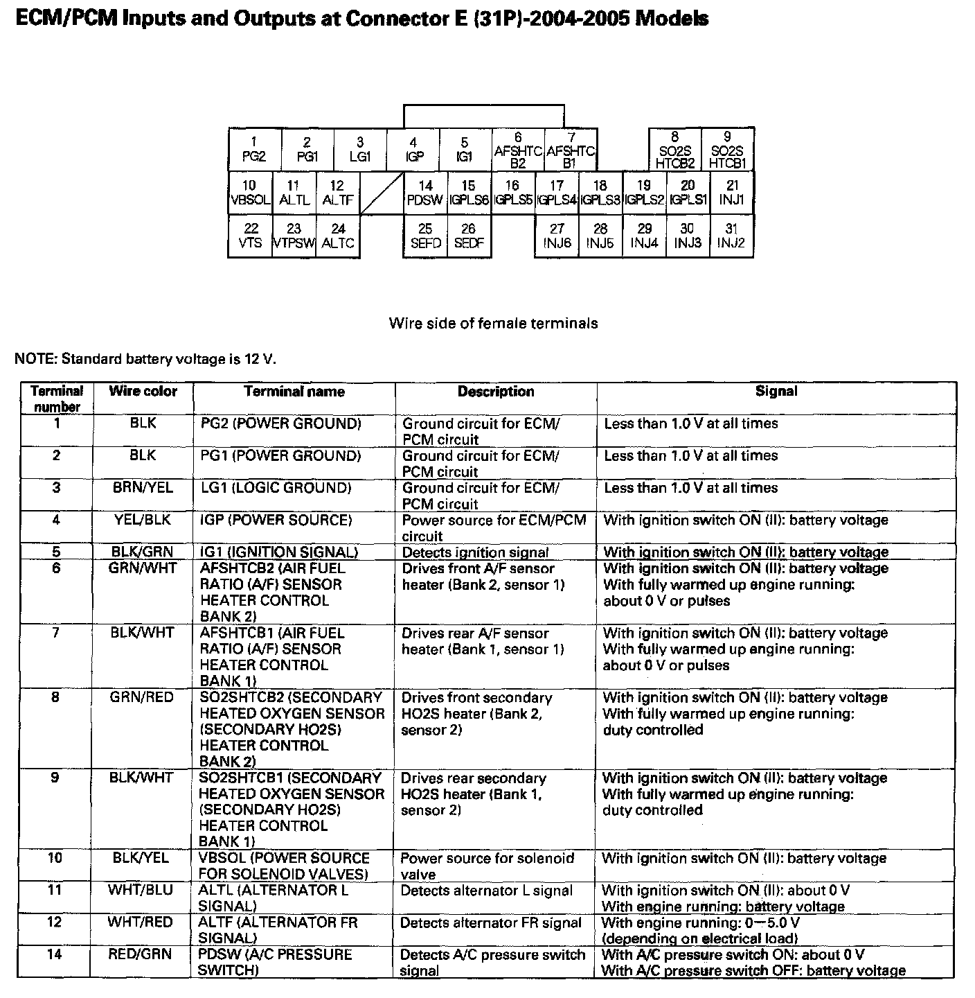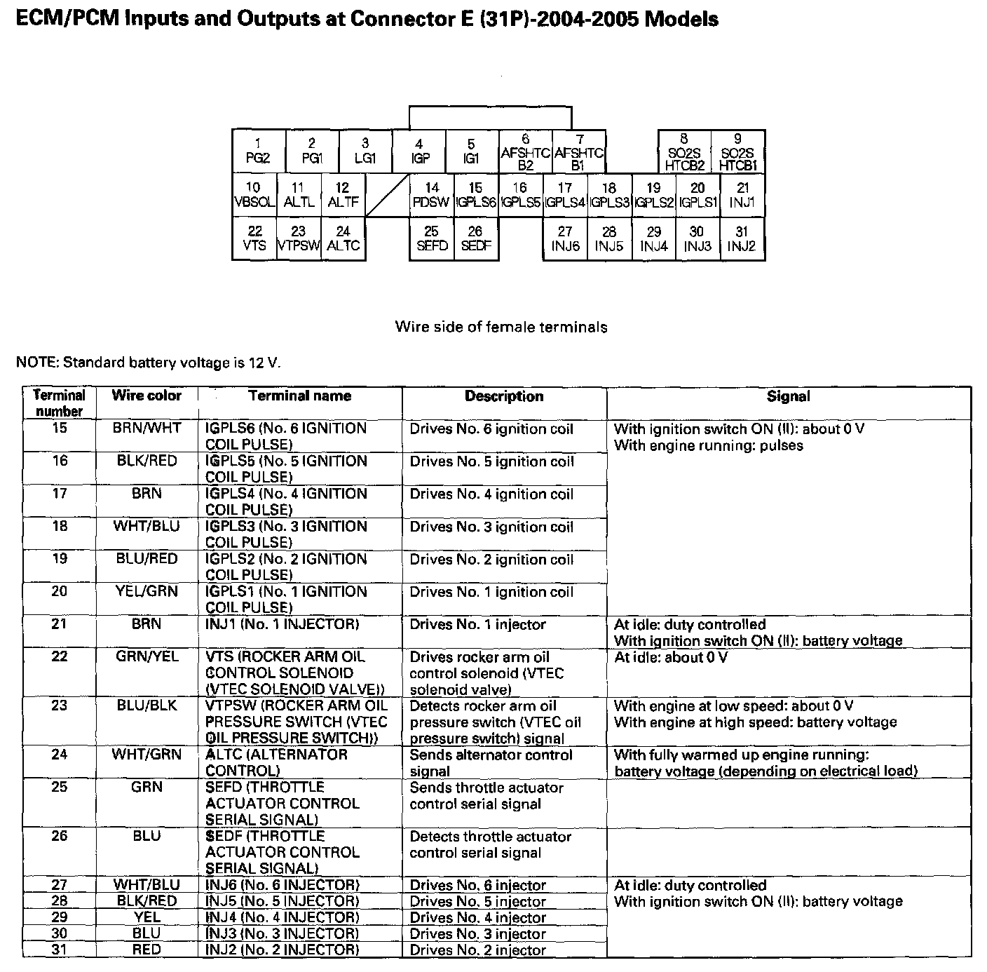 Home >> Acura >> 2005 >> TL V6-3.2L >> Repair and Diagnosis >> Powertrain Management >> Computers and Control Systems >> Relays and Modules - Computers and Control Systems >> Engine Control Module >> Testing and Inspection >> Pinout Values and Diagnostic Parameters