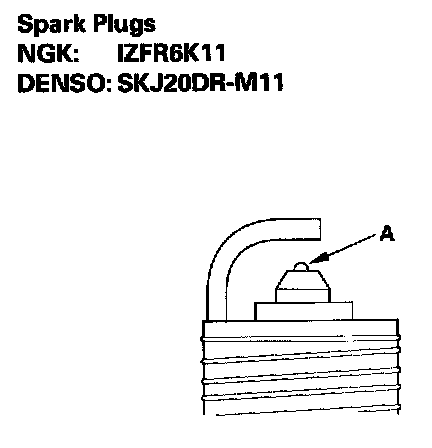 3. Do not adjust the gap (A) of iridium tip plugs;replace the spark plug if the gap is out of specification.