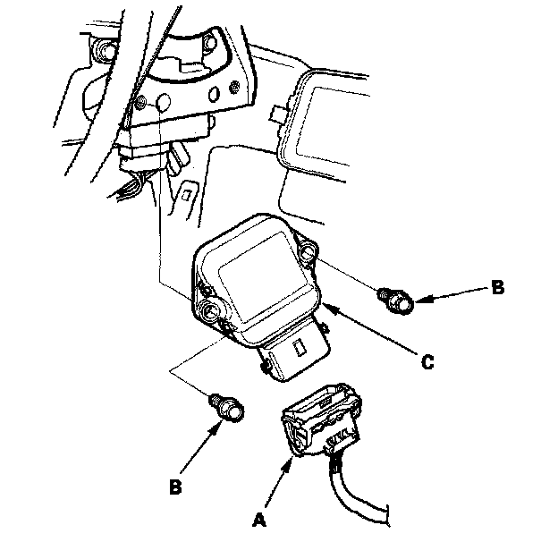 3. Remove the bolts (B), and the throttle actuator control module (C).