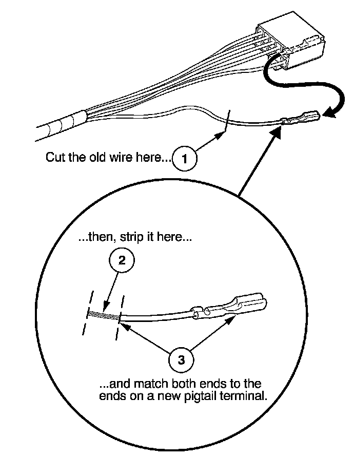3. Select a pigtail terminal that matches the original wire at both ends (same kind of terminal and same diameter bare wire).