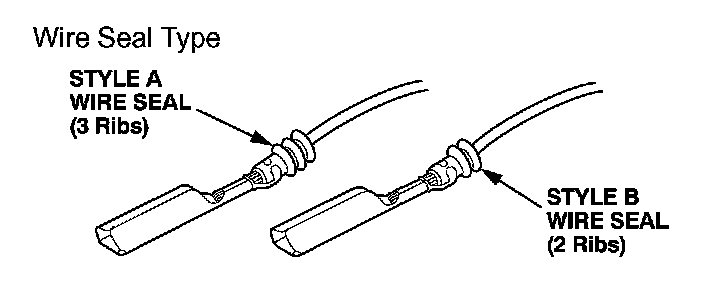 Select the proper size pigtail terminal by matching the replacement terminal part number and the wire size being repaired to the corresponding pigtail terminal part number. Then use the color (size) splice connector listed. In some instances you may also have to match the wire seal style to select the proper pigtail terminal. Pigtail terminals are available through your parts department, in quantities of 10, using normal parts ordering procedures.