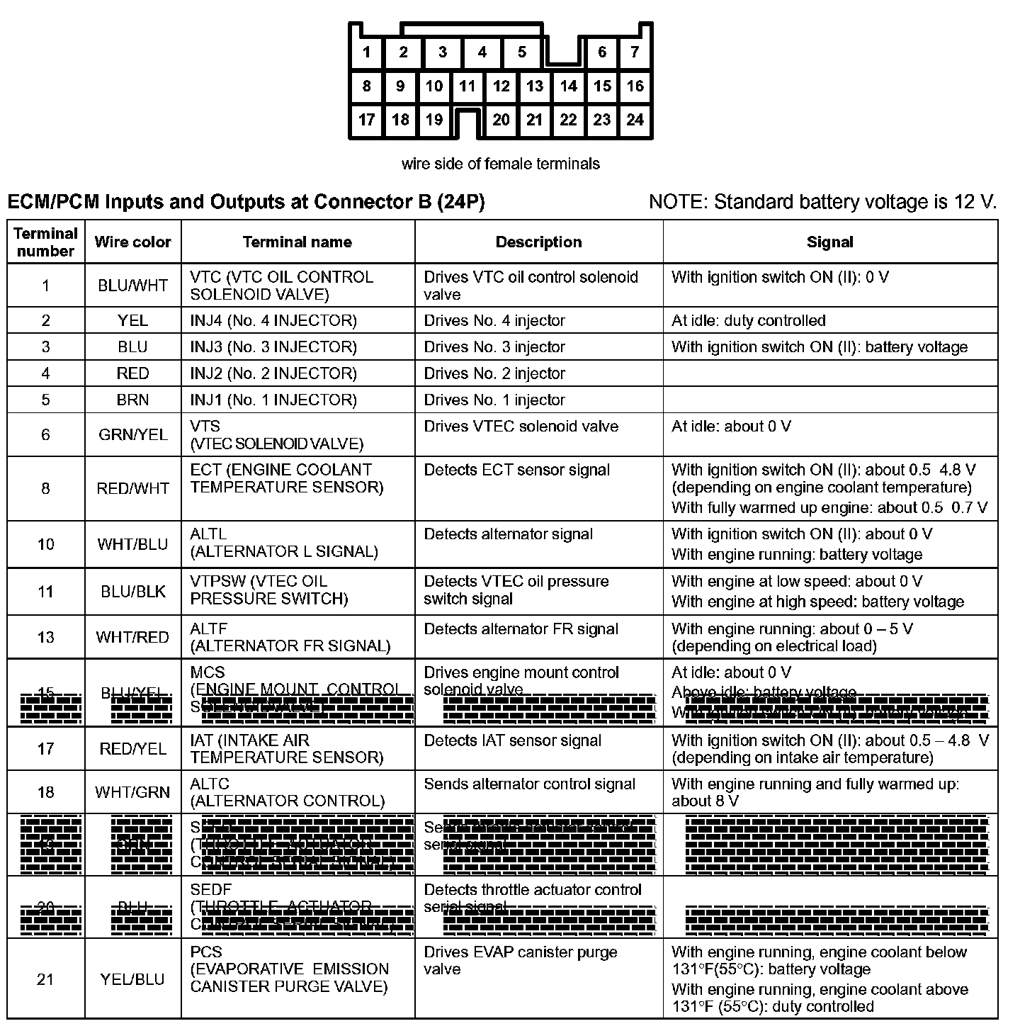 ECM/PCM Inputs And Outputs At Connector B (24P):