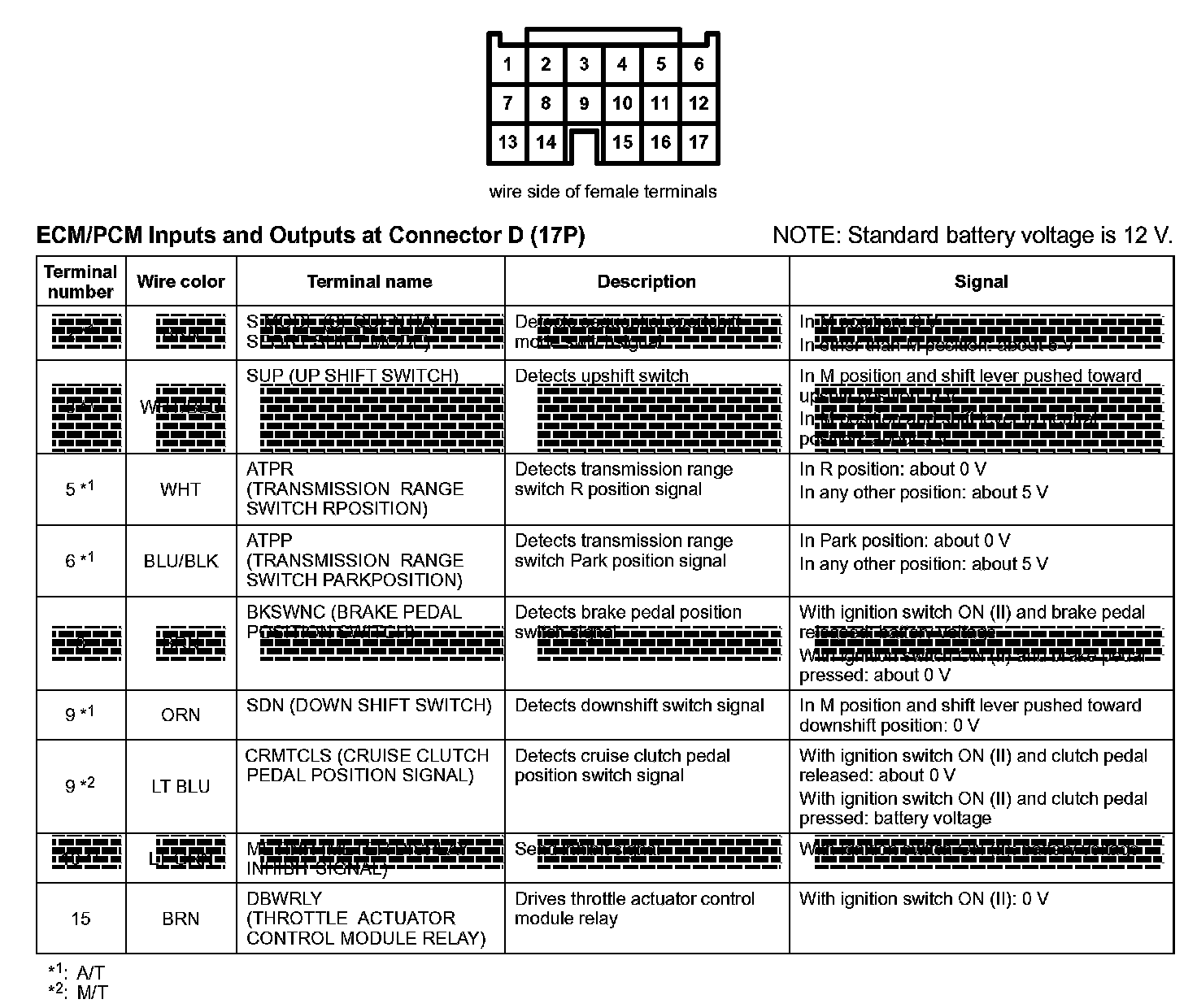 ECM/PCM Inputs And Outputs At Connector D (17P):