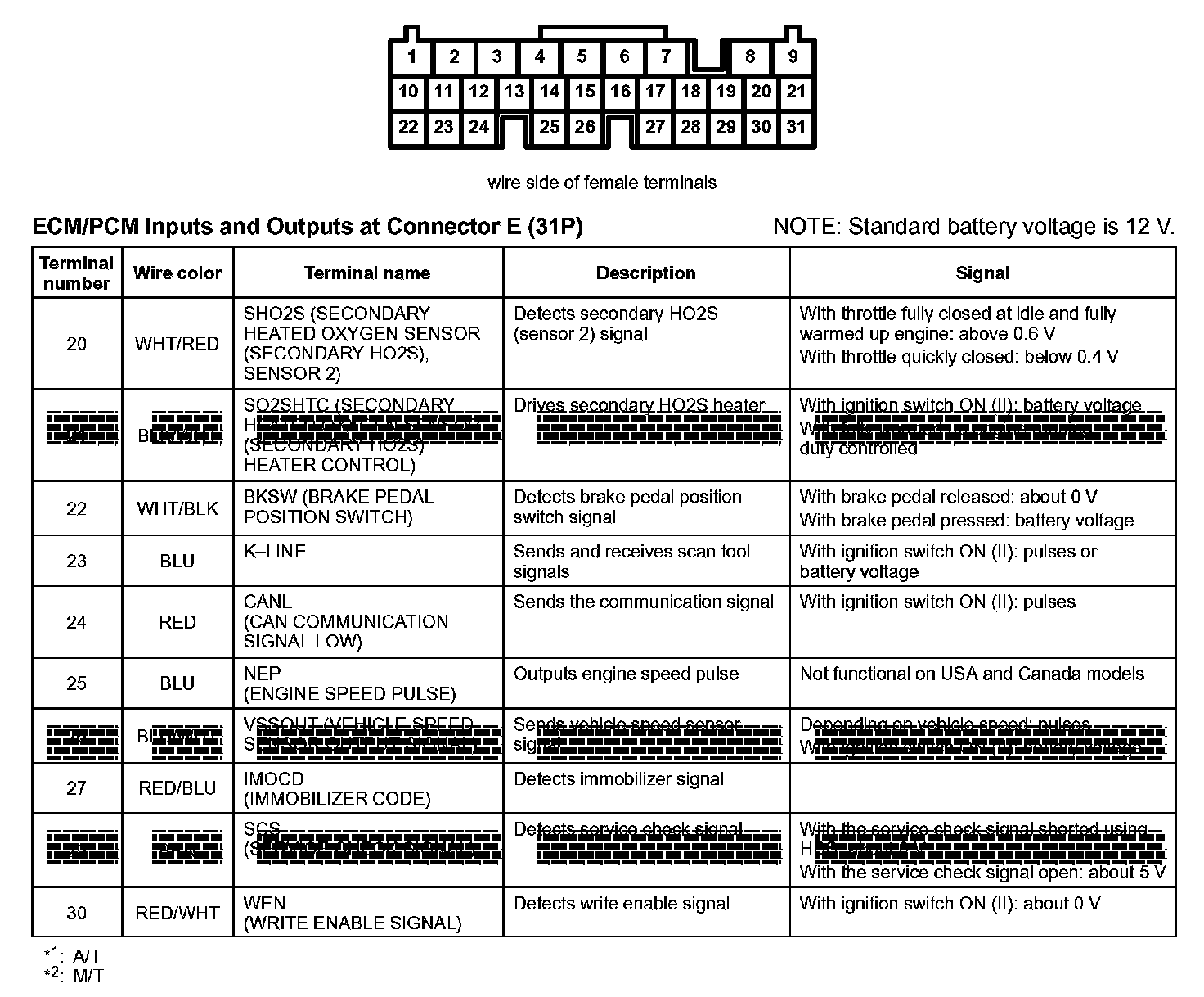 ECM/PCM Inputs And Outputs At Connector E (31P) Part 1: