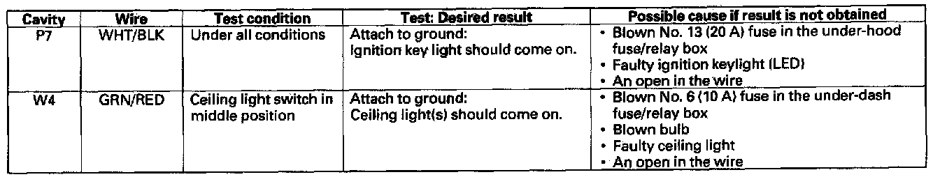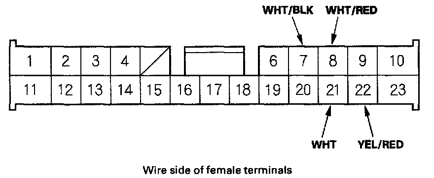 5. Reconnect the connectors to the under-dash fuse/relay box, turn the ignition switch ON (II), and make these input tests at the appropriate connectors on the under-dash fuse/relay box.