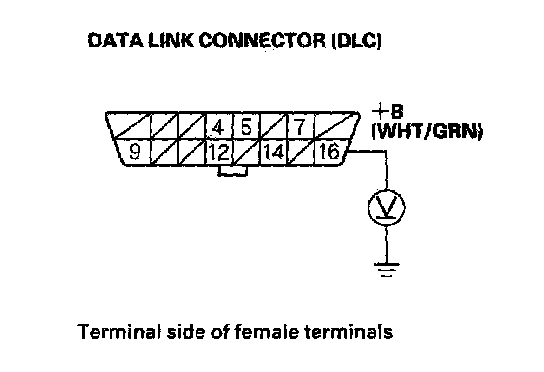 1. Measure voltage between DLC terminal No. 16 and body ground.