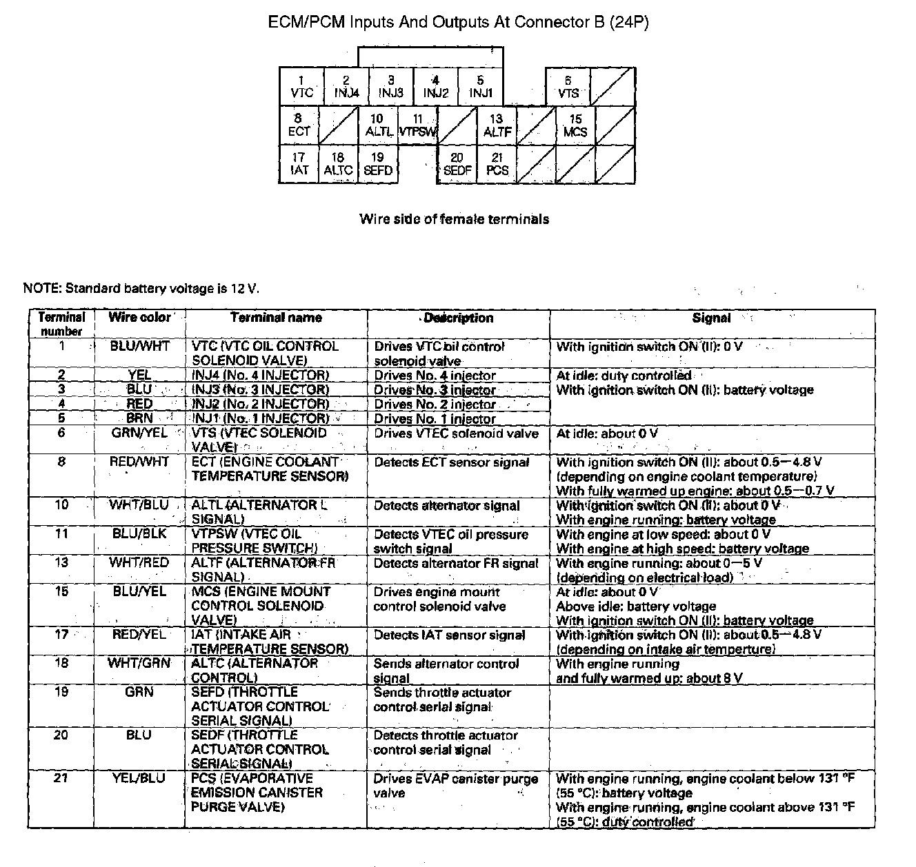 ECM/PCM Inputs And Outputs At Connector B (24P):