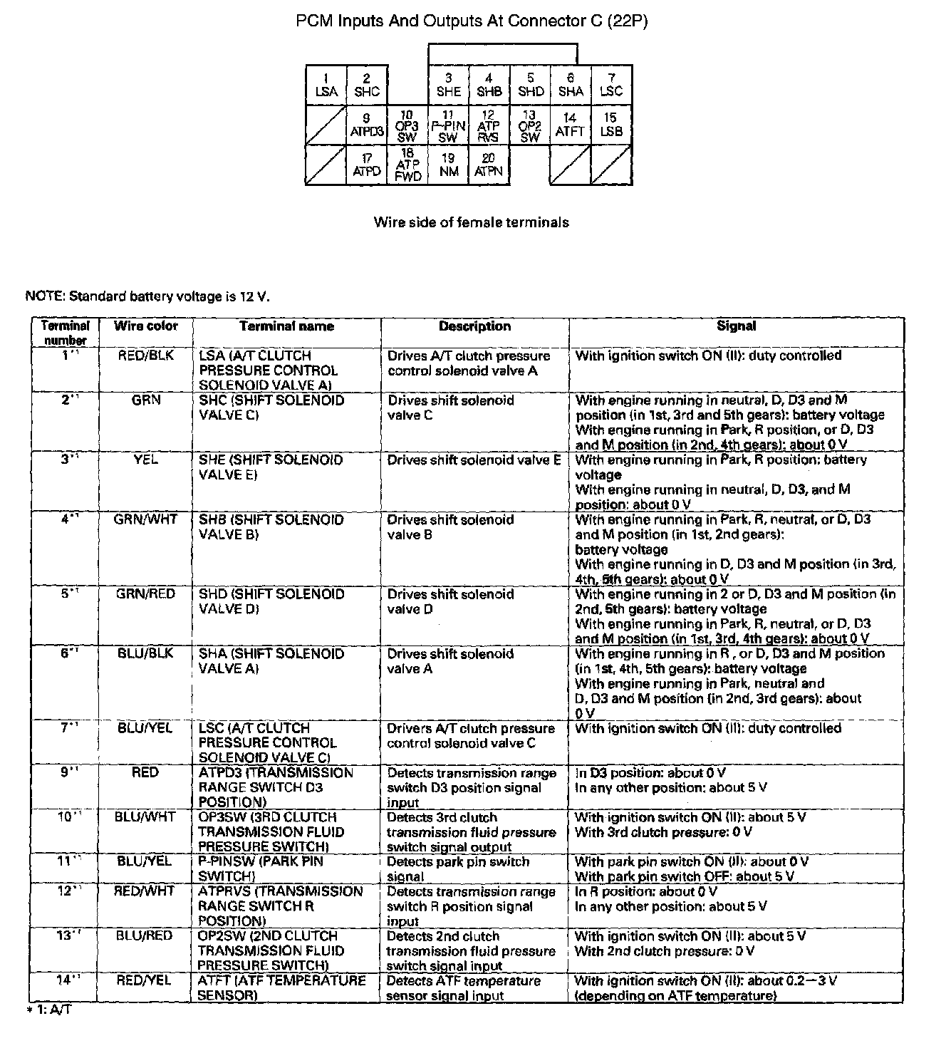 PCM Inputs And Outputs At Connector C (22P) Part 1: