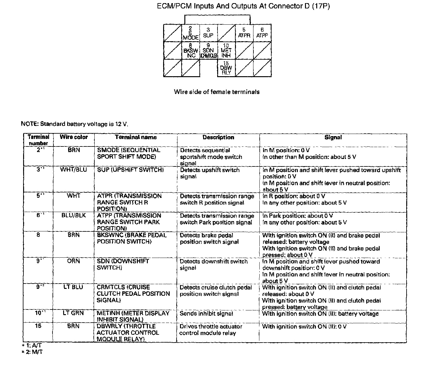 ECM/PCM Inputs And Outputs At Connector D (17P):