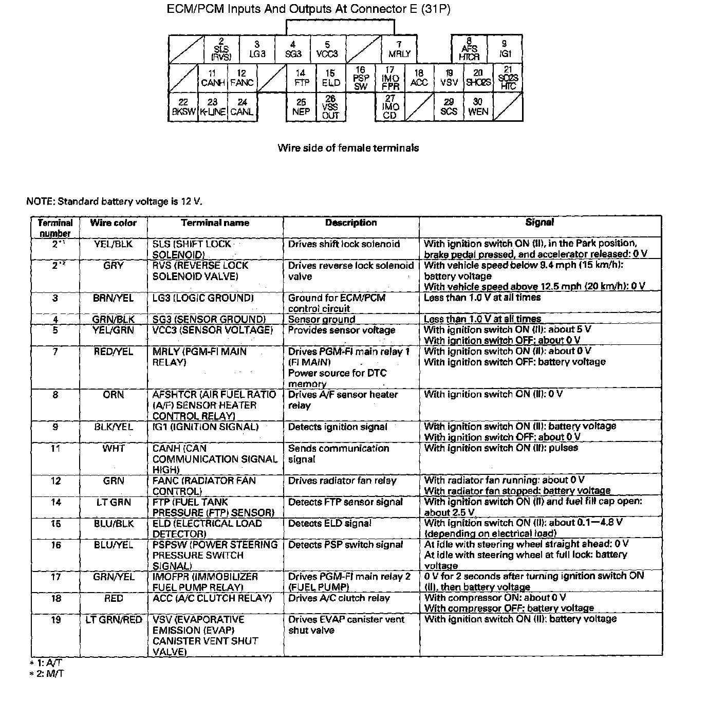 ECM/PCM Inputs And Outputs At Connector E (31P) Part 1: