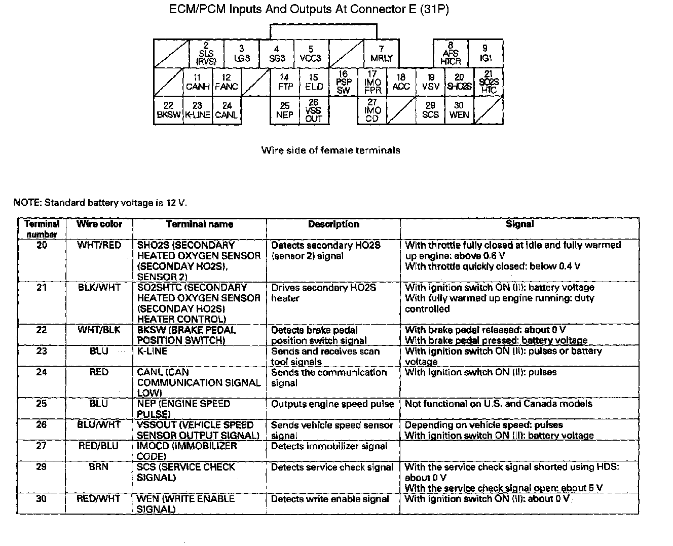 ECM/PCM Inputs And Outputs At Connector E (31P) Part 2:
