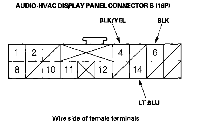 4. Reconnect the connector to the audio-HVAC display panel, and make these input tests at the connector.