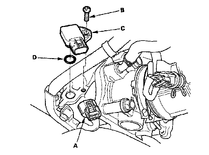 4. Install the sensor in the reverse order of removal with a new O-ring (D).