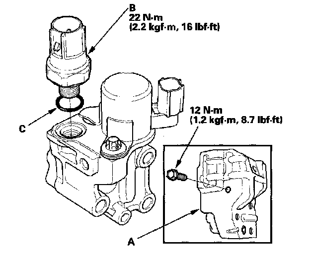 4. Install the switch in the reverse order of removal with a new O-ring (C).