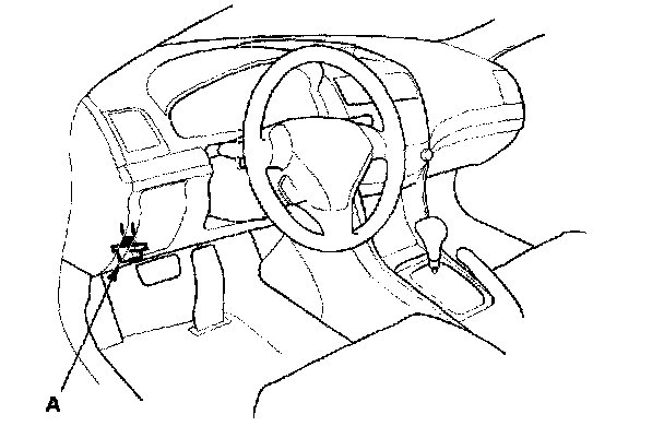 2. Connect the Honda interface module (HIM) to the DLC (A) located under the left end of the dash.