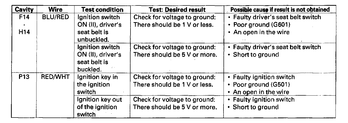- If the beeper sounds and the seat belt reminder light flashes, go to step 11.