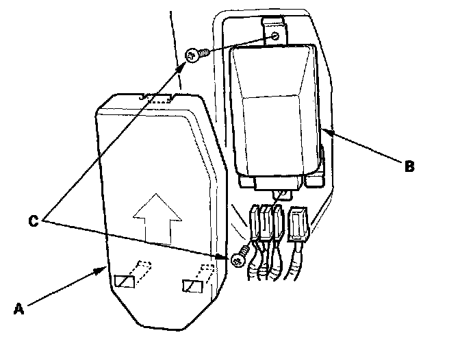 1. Place the new OPDS unit (A) on the seat-back frame Tighten the two screws (B), and connect the OPDS unit harness 8P and sensor connectors (C) to the OPDS unit. Reinstall the cover (D).