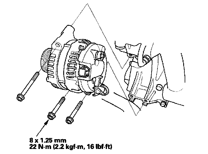 6. Remove the three bolts securing the alternator.