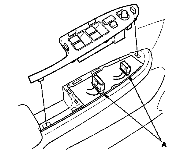 2. Disconnect the power mirror and power window switch connectors (A).