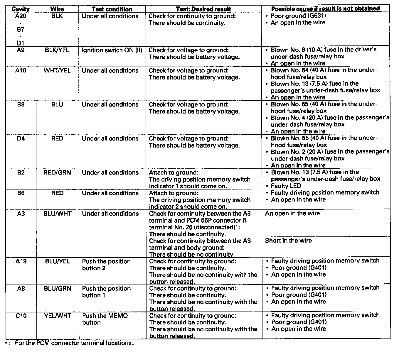 Home >> Acura >> 2006 >> MDX V6-3.5L >> Repair and Diagnosis >> Accessories and Optional Equipment >> Memory Positioning Systems >> Testing and Inspection >> Component Tests and General Diagnostics >> Driver's Power Seat Control Unit Input Test