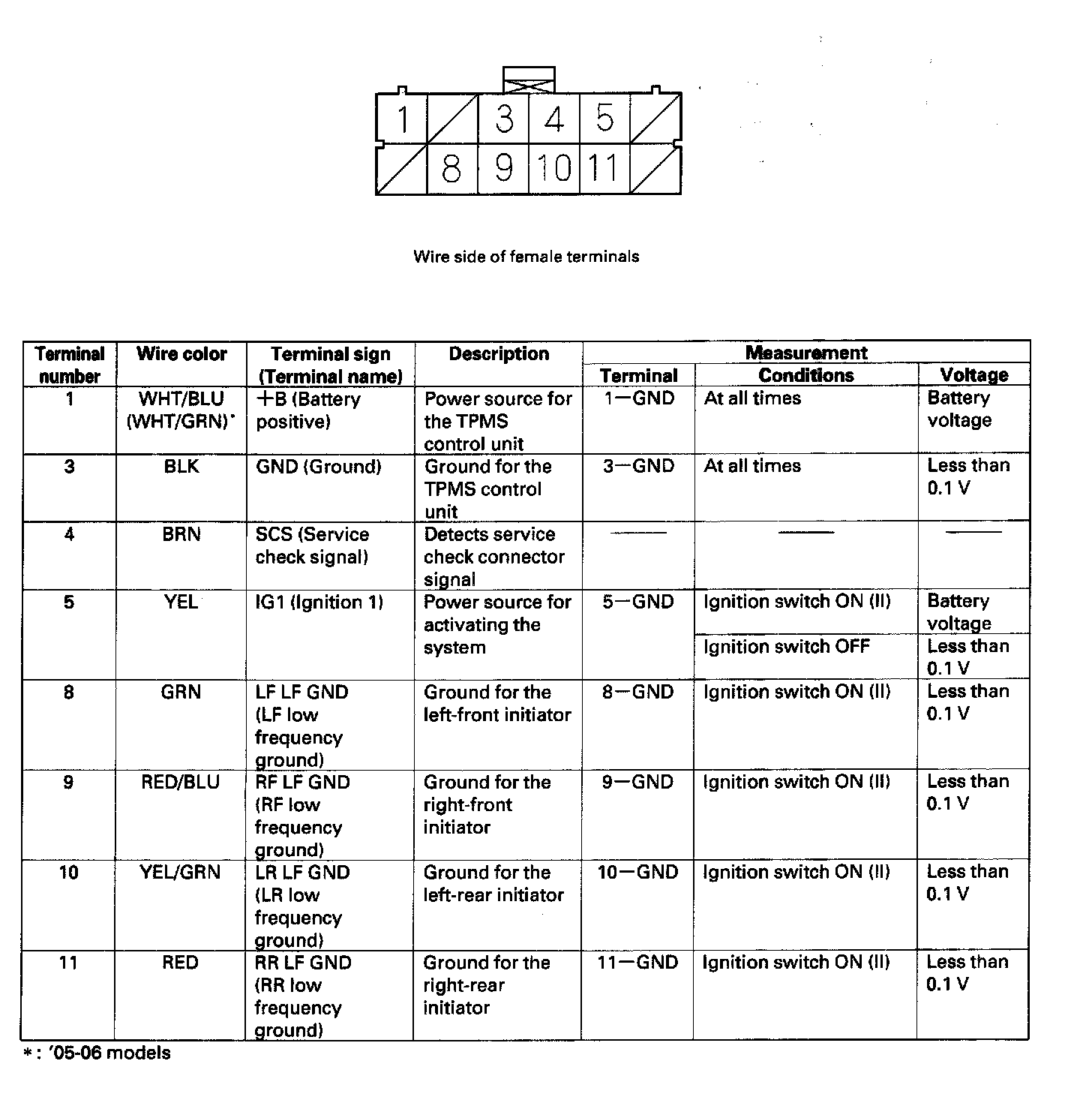 TPMS Control Unit Inputs and Outputs for Connector B (22P):