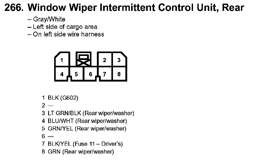 266. Window Wiper Intermittent Control Unit, Rear: