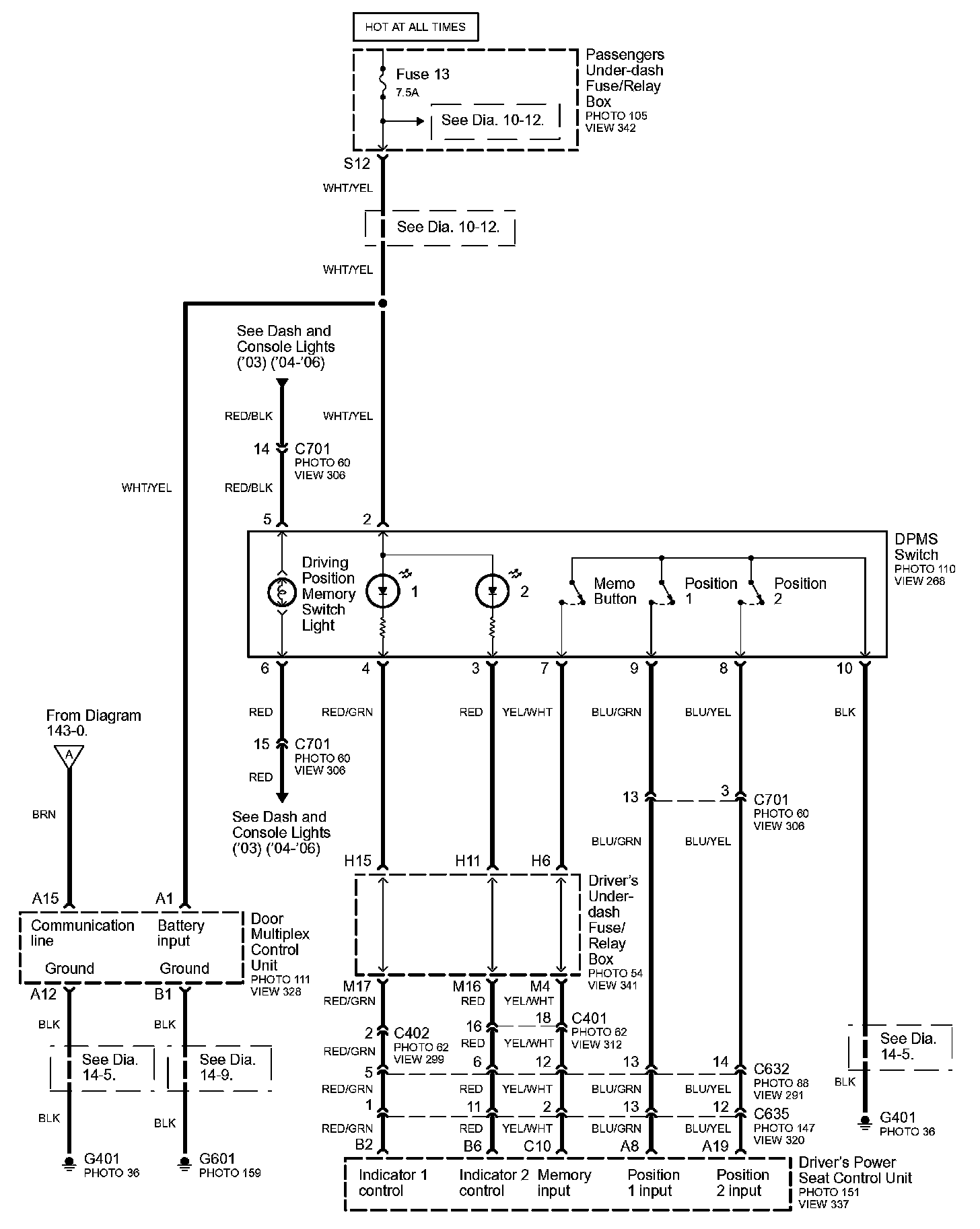 Diagram Set 143 (DPMS (Driving Position Memory System)/Lumbar Support System)