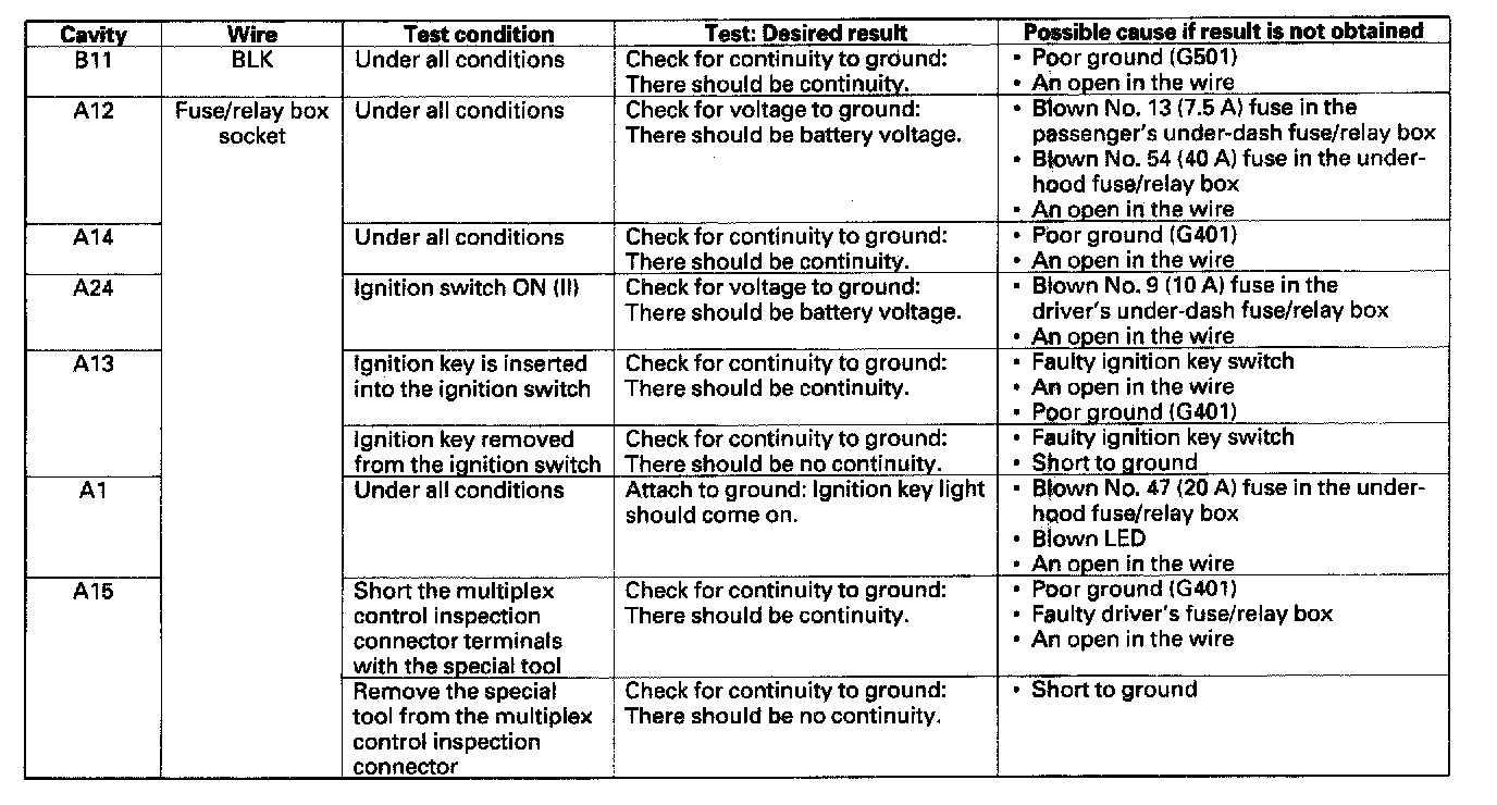 Multiplex Control Unit Input TestBefore performing the multiplex control unit input test, do the multiplex troubleshooting Mode 1 and Mode 2 test.