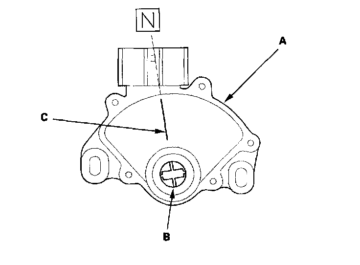 10. Set the new transmission range switch (A) to the N position. The transmission range switch clicks in the N position, and the control shaft hole (B) aligns with the N positioning line (C).