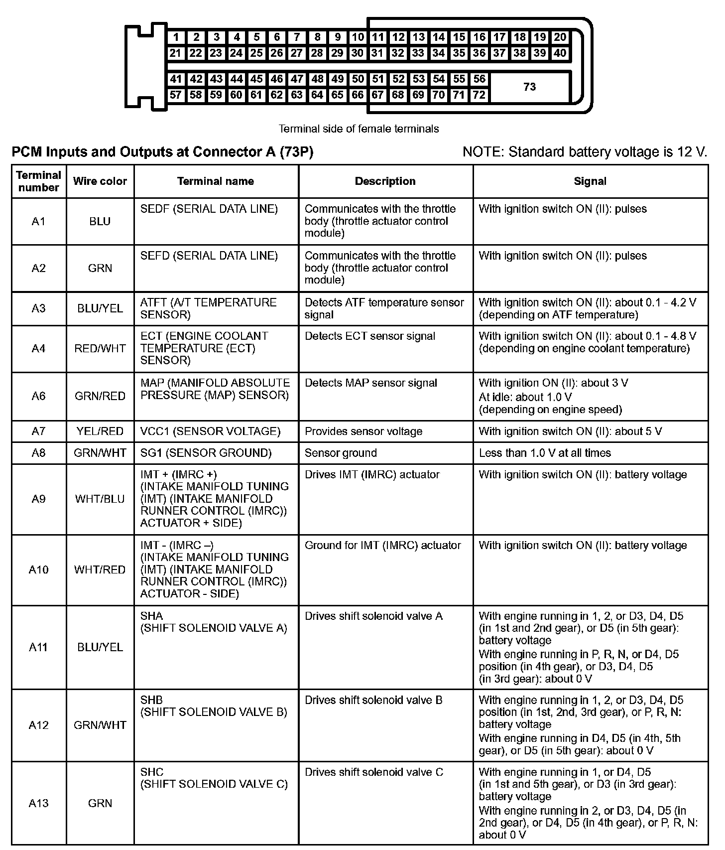 PCM Inputs And Outputs At Connector A (73P) Part 2: