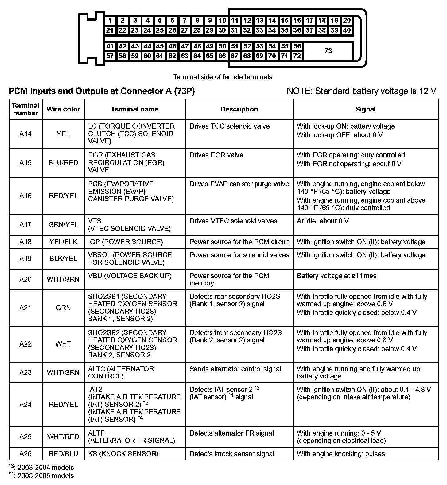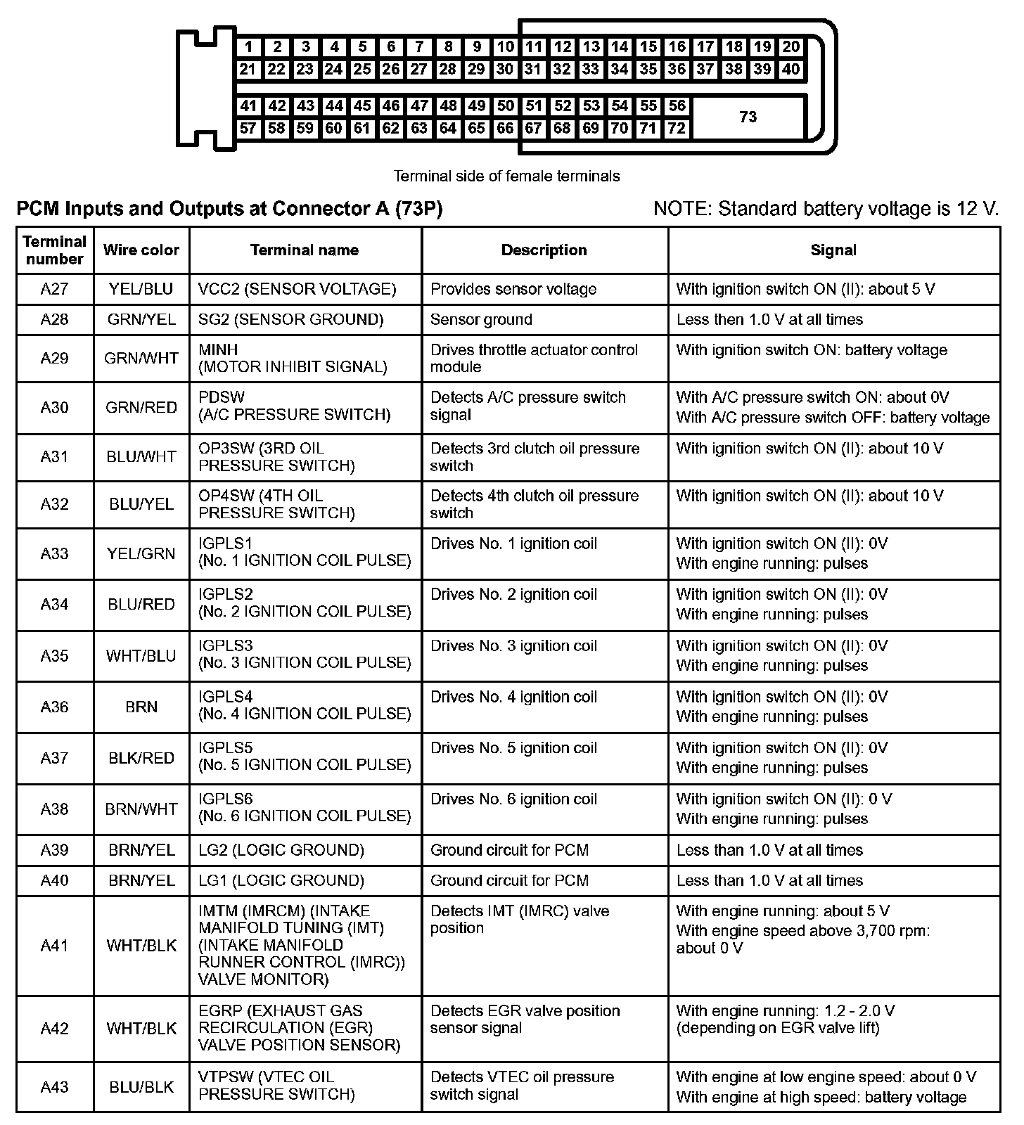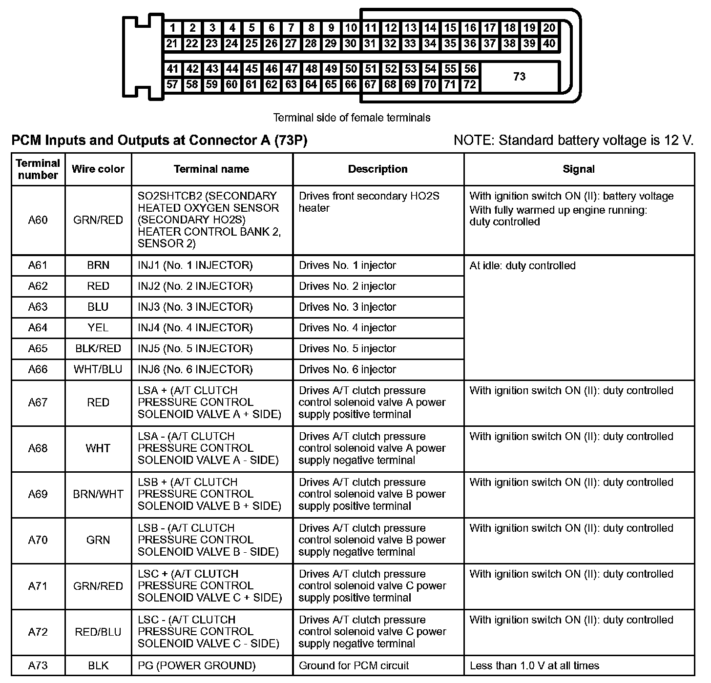 PCM Inputs And Outputs At Connector A (73P) Part 4: