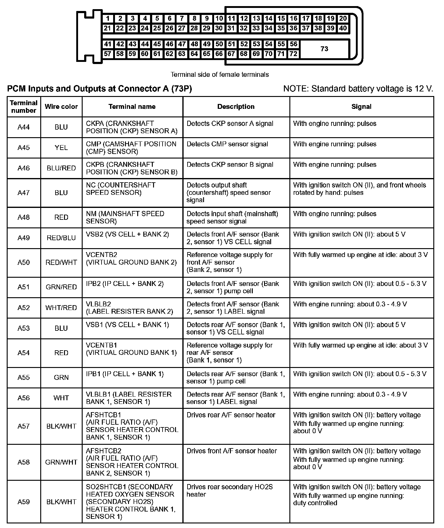 PCM Inputs And Outputs at Connector A (73P) Part 1: