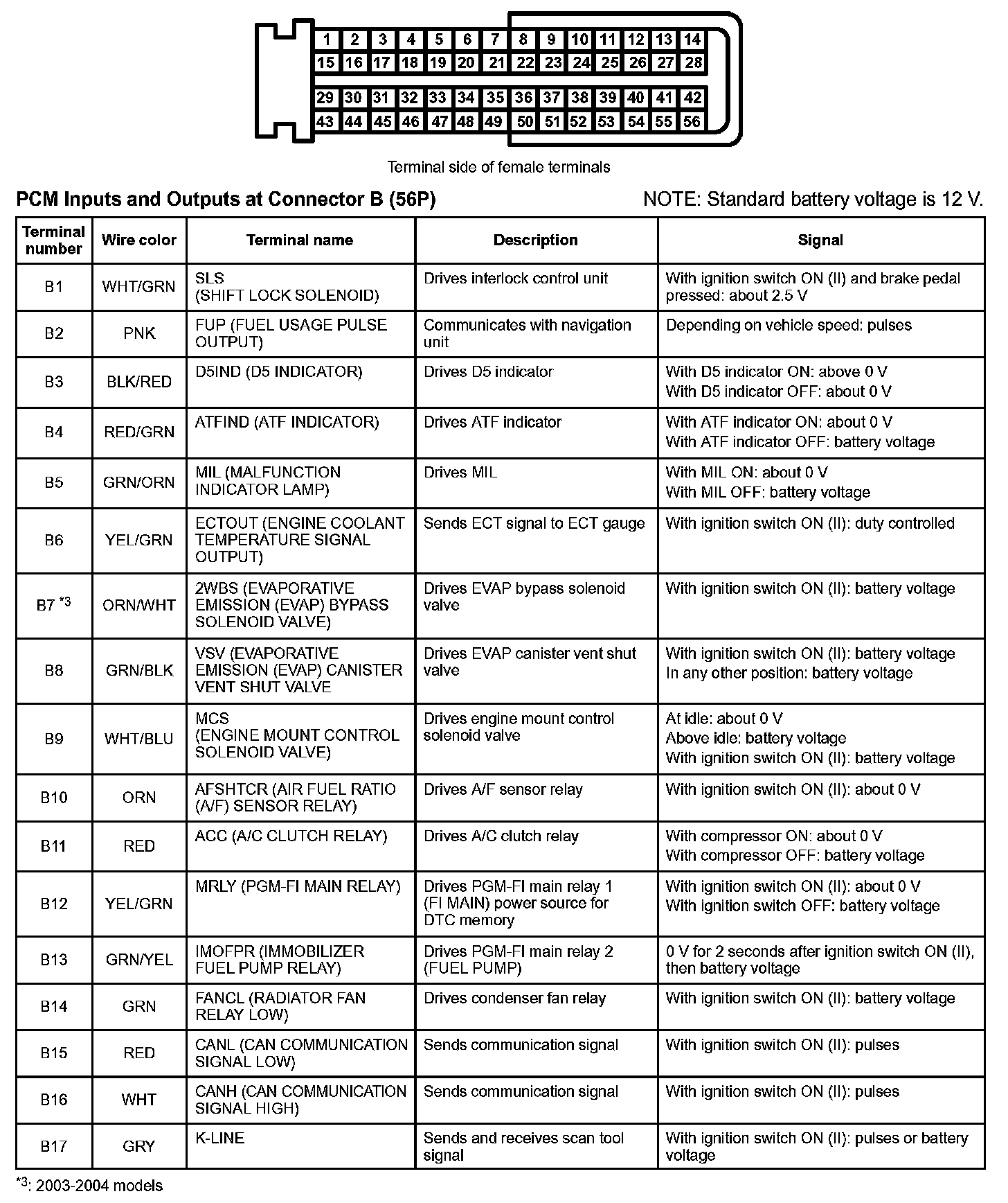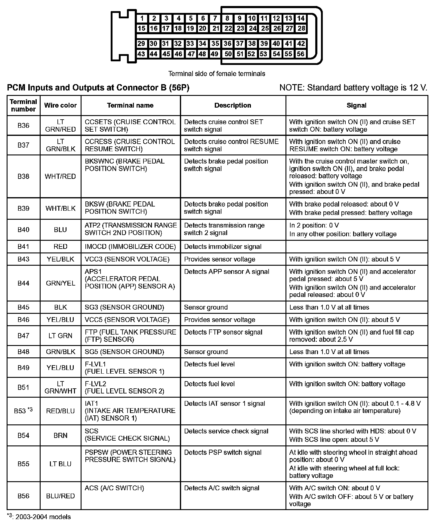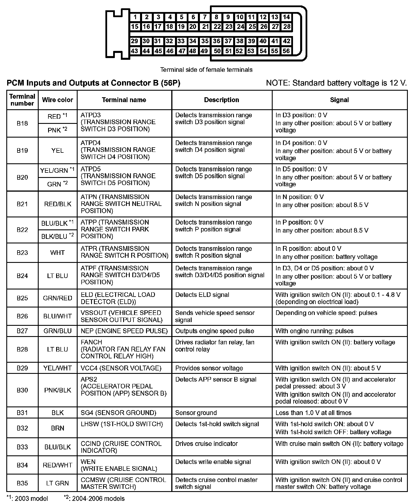 PCM Inputs And Outputs At Connector B (56P) Part 1: